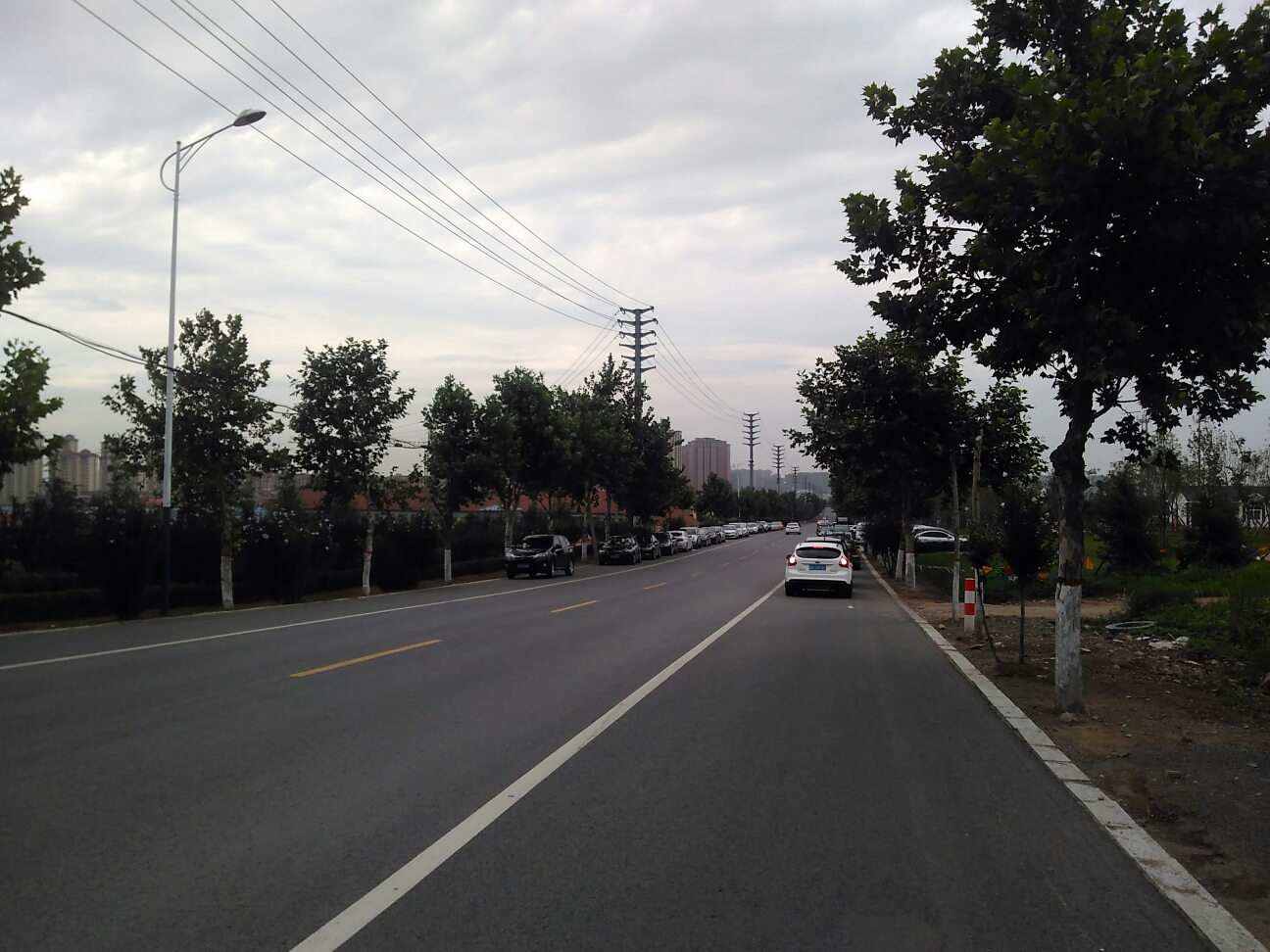 煙台前村の前から北に伸びる広くて長い一本道。