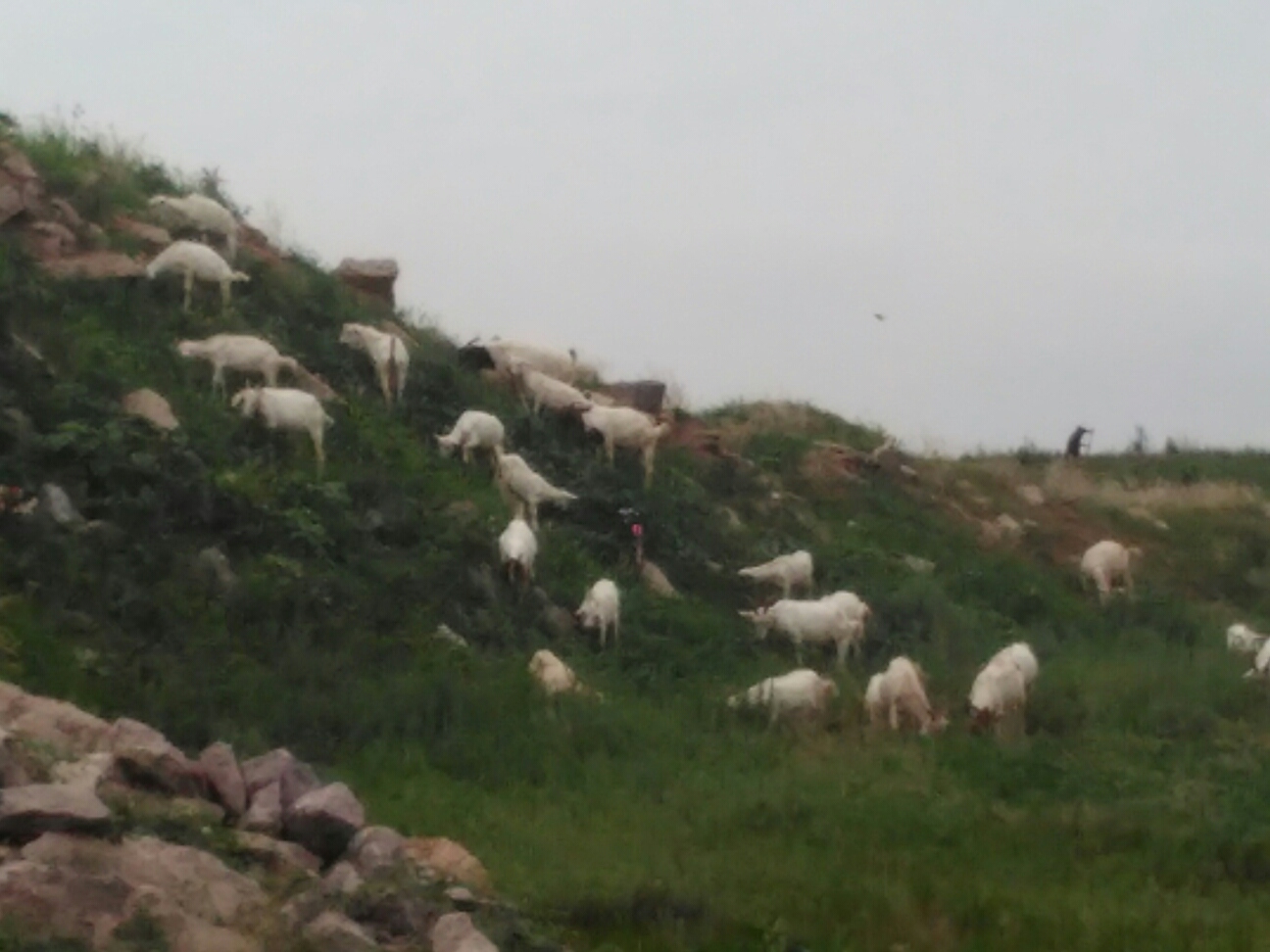 傍らはヤギの群れが活動中の小山